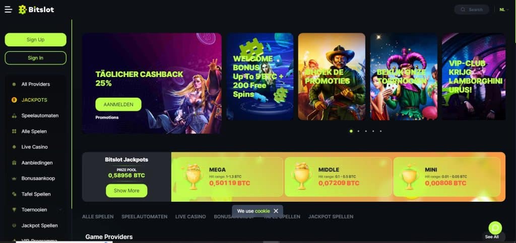 Bitslot is een ander online Bitcoin casino wat ons erg positief is opgevallen. Spelers kunnen bij Bitslot gemakkelijk beginnen met spelen, ongeacht waar ze op dat moment zijn. Storten van tegoed kan met Bitcoin, maar ook met een aantal andere cryptomunten.