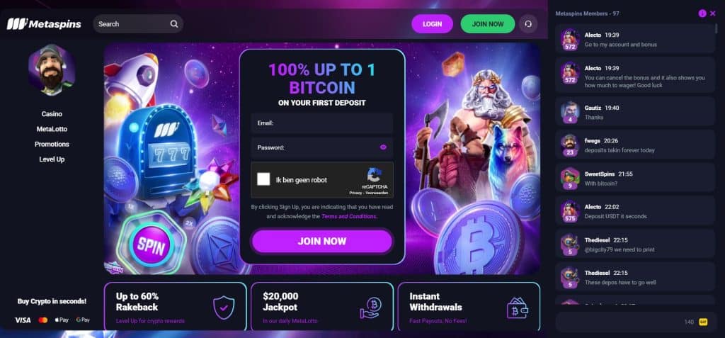 Het volgende casino op onze lijst is Metaspins. Naar onze mening is het een uitstekend Bitcoin casino Nederland en een van de beste plekken om te gokken met crypto. Het casino heeft een geweldig spelaanbod en hiernaast ook uiterst interessante bonussen & promoties waar spelers gebruik van kunnen maken.