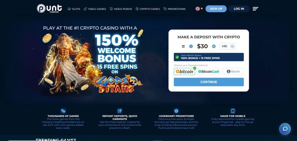 Punt Casino - 150% Bonus Match + 15 Gratis Spins
