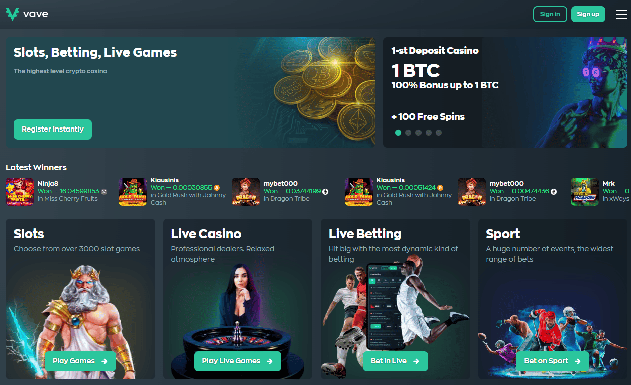 | VAVE Casino | Tot 1 Bitcoin Bonus + 100 Gratis Spins | Tot 1 Bitcoin Bonus + 100 Gratis Spins